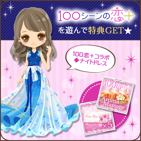コラボ限定アバター「100恋+コラボ◆ナイトドレス」のほか、アプリ内アイテムをプレゼント