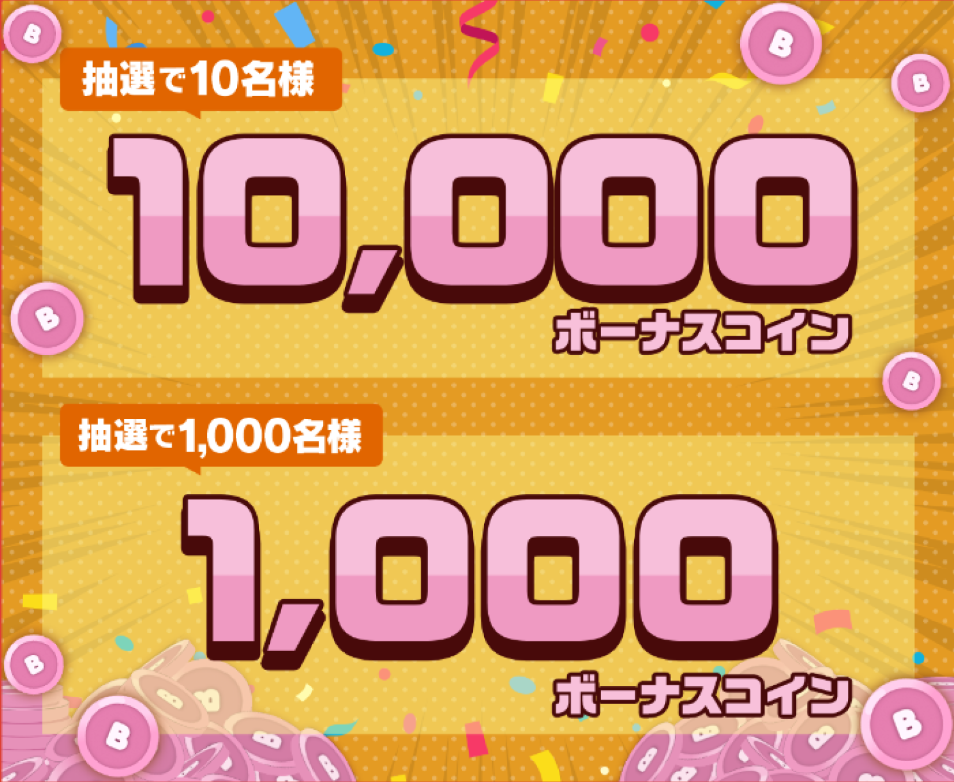キャンペーン期間中、コインを購入した人の中から抽選で大量ボーナスコインをプレゼント!