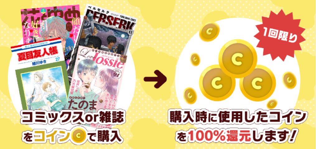 「ストア」でコミックスや雑誌を購入すると1冊分のコインを1回限り100%コインバック!