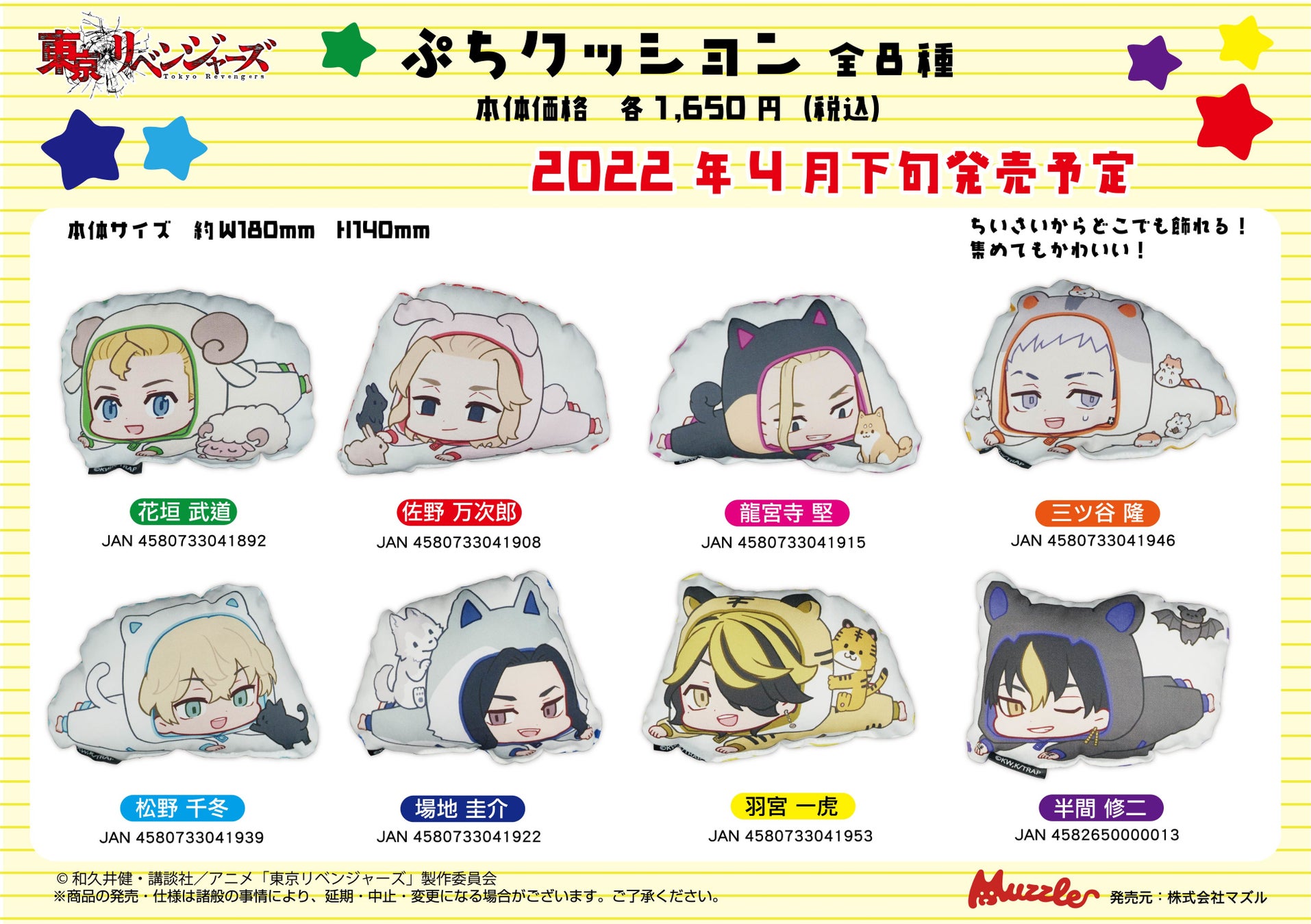株式会社マズル(本社:東京都千代田区)は、TVアニメ『東京リベンジャーズ』トレーディングキャラ☆ジェムチャームCollection、ぷちクッションの受注を開始いたします。