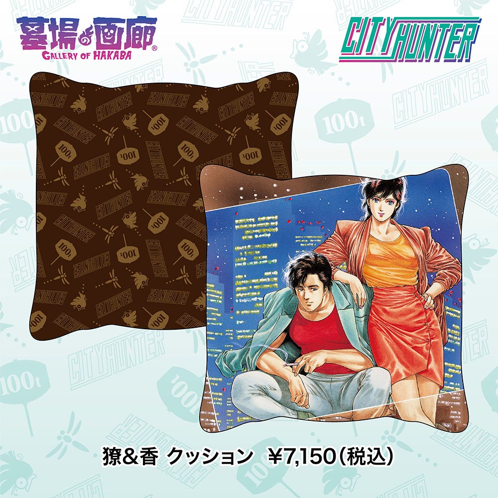 おうち時間にぴったり!獠&香、そして背面はシティーハンターのモノグラムデザインのクッション。