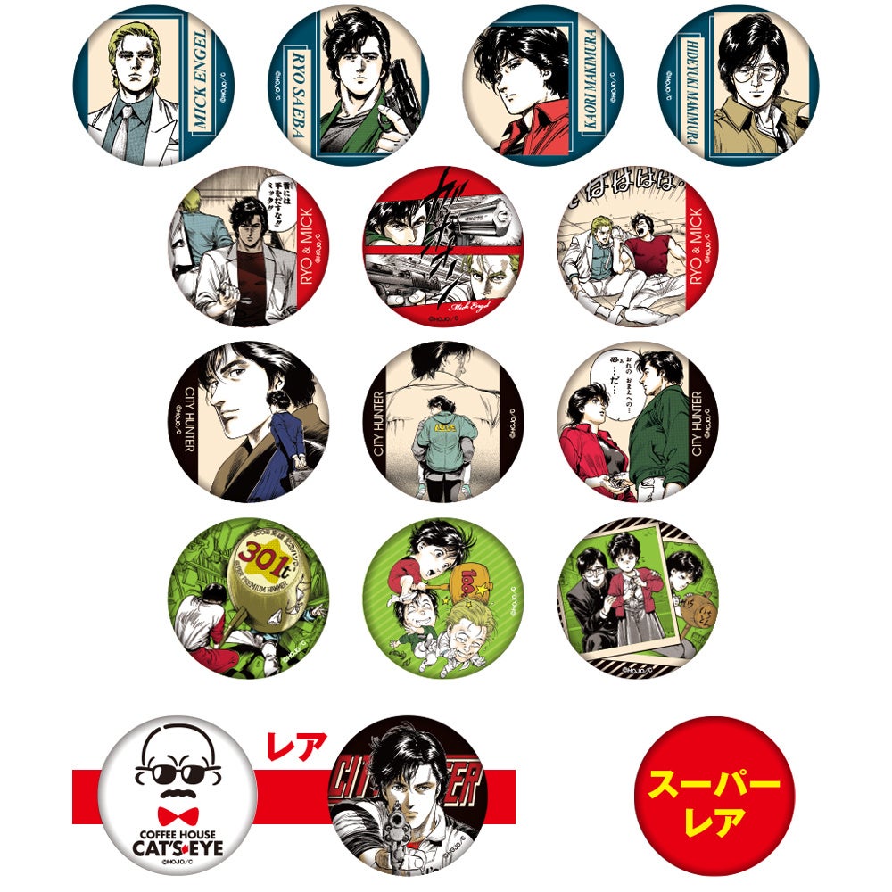 集めて楽しい!ミック、香、獠にまつわるMKRなブラインド缶バッジ。