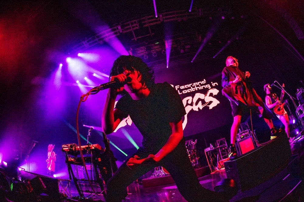 SF的な世界観の壮大なオープニングムービーが流れる。バンドリーマー(“バンドリ!”ファン)は熱を込めた手拍子でラスベガス(Fear, and Loathing in Las Vegas)を迎えるが、気合十分な様相のSo(Clean Vo)とMinami(Vo/Key)が、さらに手拍子を煽り、“知っている人も、知らない人も、一緒に楽しんでいこうぜ!”(So)と声を上げてから1曲目に「Return to Zero」を投下。ラスベガスが鳴らす骨太で華々しいサウンドは、“知っている人にも、知らない人にも”強制的にアドレナリンを分泌させる。彼らならではのパラパラ風の振付に触発されて踊りだす観客も続出し、RAS(RAISE A SUILEN)が主催であることを忘れさせてしまうくらいに、あっという間にZepp DiverCity(TOKYO)をホームに変えてしまった。