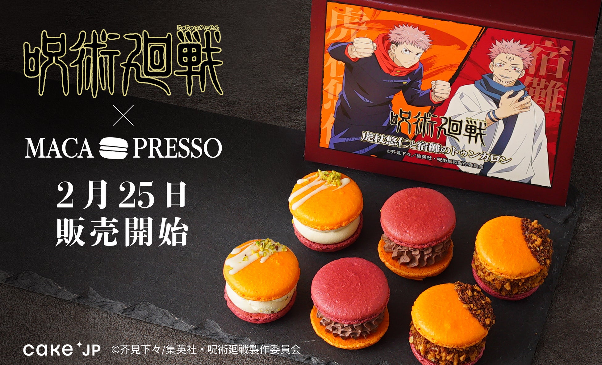 マカロン専門店「MACAPRESSO(マカプレッソ)」を運営する株式会社 In Style Japanは、大人気TVアニメ『呪術廻戦』とのコラボ商品として、Cake.jpオリジナル商品の「虎杖悠仁と宿儺のトゥンカロン」を2月25日(金)より販売開始します。