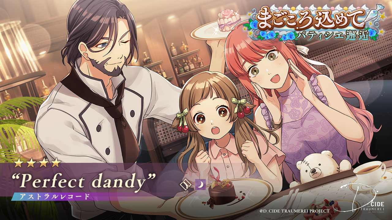 株式会社ブシロード(本社:東京都中野区、代表取締役社長:橋本義賢)は、株式会社サムザップ(本社:東京都渋谷区、代表取締役:日高裕介)、株式会社ドリコム(本社:東京都品川区、代表取締役社長:内藤裕紀)と共同で企画するゲームアプリ「D_CIDE TRAUMEREI/ディーサイドトロイメライ」にて、ストーリーイベント「恋する洋菓子の変容」と、「まごころ込めてパティシエ邂逅」を開催いたします。報道関係の皆様におかれましては、ぜひ本情報をお取り扱いいただけますよう、お願い申し上げます。