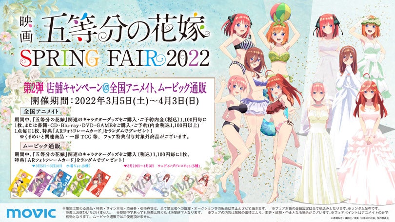 特典がもらえる「映画 五等分の花嫁 SPRING FAIR 2022 第2弾」を3月5日から全国アニメイト・ムービック通信販売にて開催いたします。