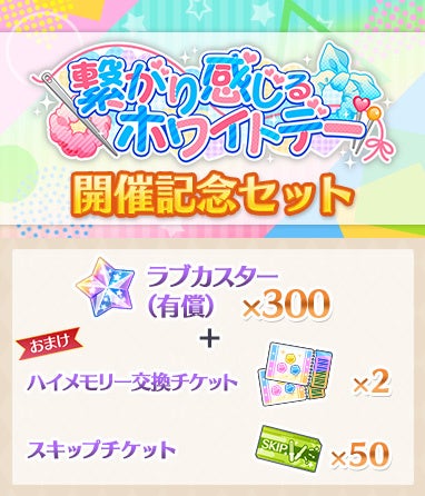 また、イベント開催を記念して、育成や攻略に役立つアイテムが入った「『繋がり感じるホワイトデー』開催記念セット」の販売も予定しております。