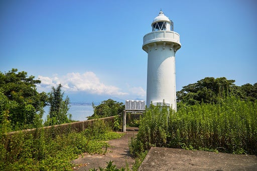 江戸時代、島原の乱の戦略上の要衝となった湯島の西端に建つレトロな灯台。島の高台から島原湾、湯島瀬戸を往来する船を照らす。灯台周辺から長崎、普賢岳のパノラマの眺望は絶景。晴れた日には世界遺産の原城跡が望める。