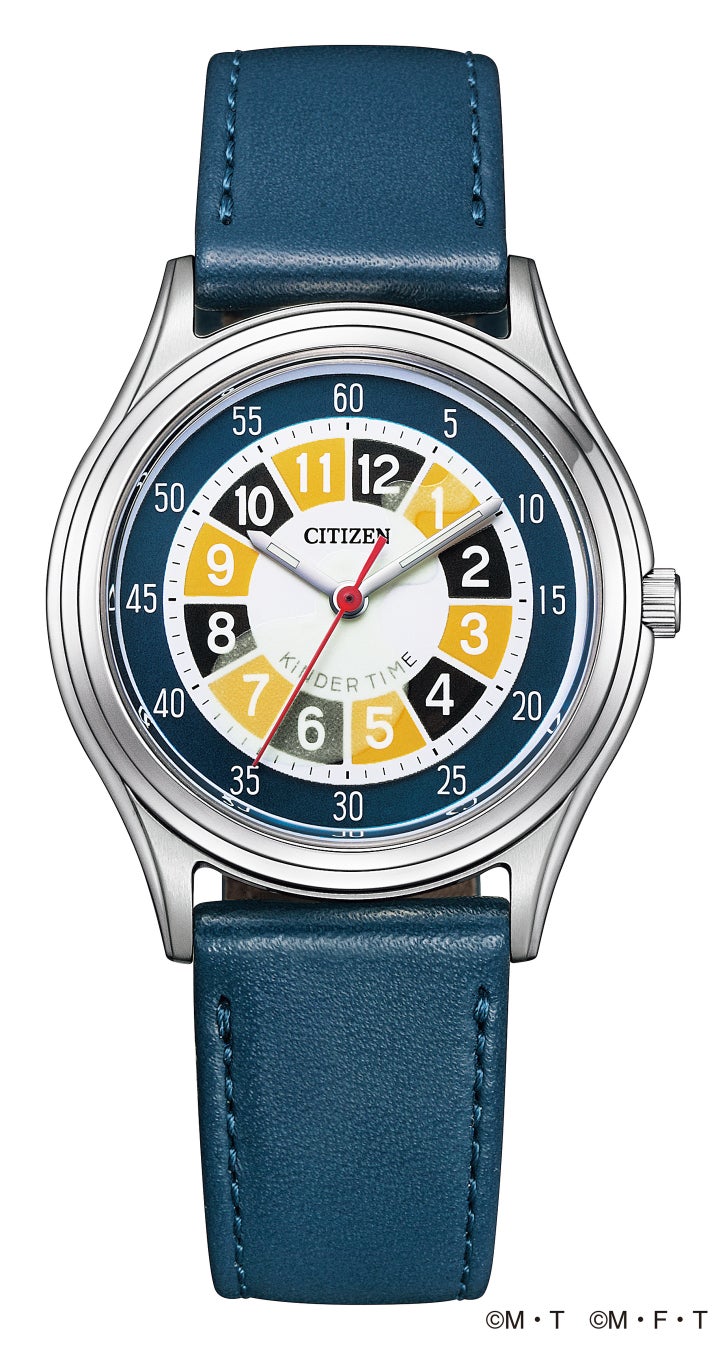 本モデルのデザインのベースになるのは、テレビアニメーション「ゲゲゲの鬼太郎(第1期)」(1968年~1969年)がテレビ放送された1968年にシチズンが発売した「キンダータイム」。子供が簡単に時間の確認を出来るように、色分けされたインデックスが特徴的なデザインを活かし、カラーリングで「鬼太郎」と「目玉おやじ」を表現しました。「鬼太郎」をモチーフにしたBJ6540-34Lは、文字板に人魂(火の玉)型の夜光を施しているので、暗闇で人魂が怪しく光ります。両モデルとも共通して、テレビアニメーション「ゲゲゲの鬼太郎」の第1期(1968年~1969年)~第6期(2018年~2020年)に登場する、歴代の目玉おやじをプリントした替えバンドが付属しています。その日の気分やファッションに合わせてご自身で簡単に付け替えられます。裏ぶたには、「ゲゲゲ ゲゲゲの鬼太郎」の刻印が入っています。限定BOXは90年代に隆盛を極めたビデオテープのパッケージ風に仕上げました。スリーブは各キャラクターの第1期~第6期の変遷が分かるデザインです。