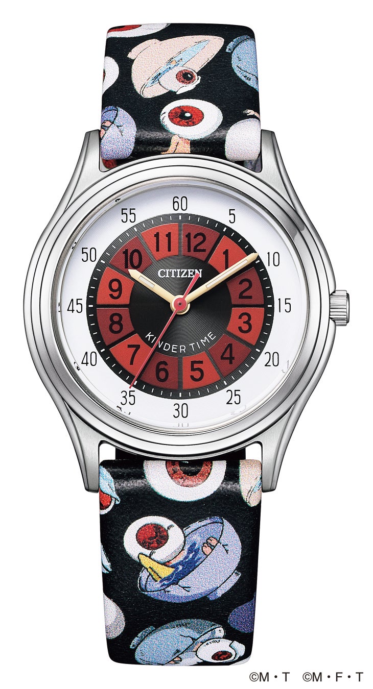 子供が簡単に時間の確認を出来るようにインデックスを色分けした、特徴的なデザインを活かし、カラーリングで「鬼太郎」と「目玉おやじ」を表現しました。