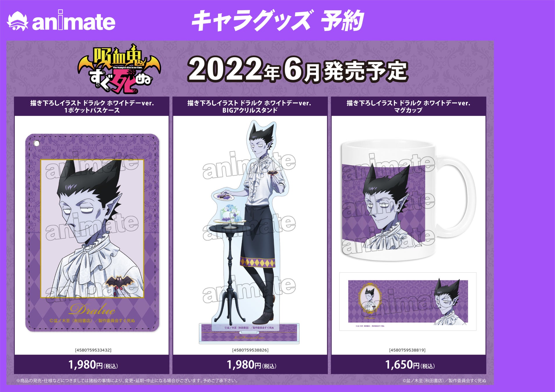 2022年3月12日(土)よりアニメイト通販にて「『吸血鬼すぐ死ぬ』アニメイト通販フェア」の実施が決定いたしました。