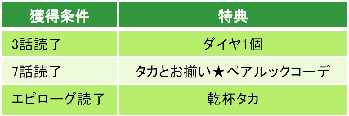 またタカ本編ストーリーの配信に合わせて、早期読了キャンペーンを実施中です。タカの本編ストーリーを期限までに指定の話数読み終えると、可愛いアバターを手に入れることができます。