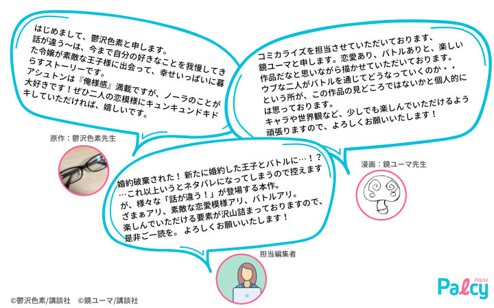 『話が違うと言われても、今更もう知りませんよ ~婚約破棄された公爵令嬢は第七王子に溺愛される~』は少女・女性マンガアプリPalcyにて連載され、毎週日曜日に更新予定。