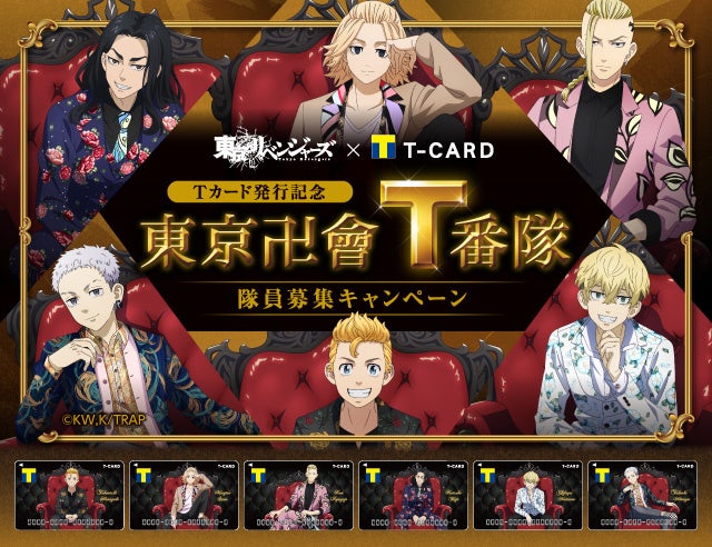 東京卍會6名の描き下ろしデザインのTカードは、3月14日(月)から予約受付、3月24日(木)から全国のTSUTAYA・旭屋書店にて店頭発行を開始します。(発行手数料:550円)