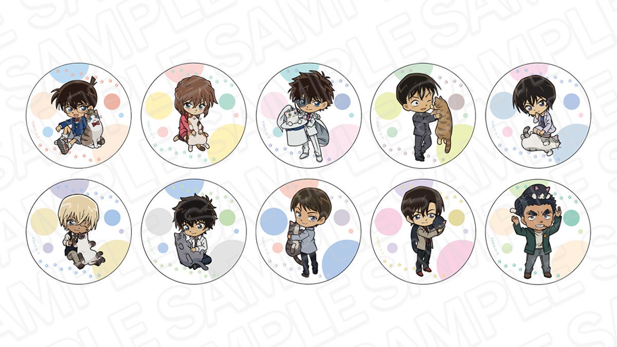 『名探偵コナン』から、ねこと仲良し♡がテーマの描き起こしデフォルメイラストを使用した「カンバッジ(ブラインド)やアクリルスタンド」等が再販売中!