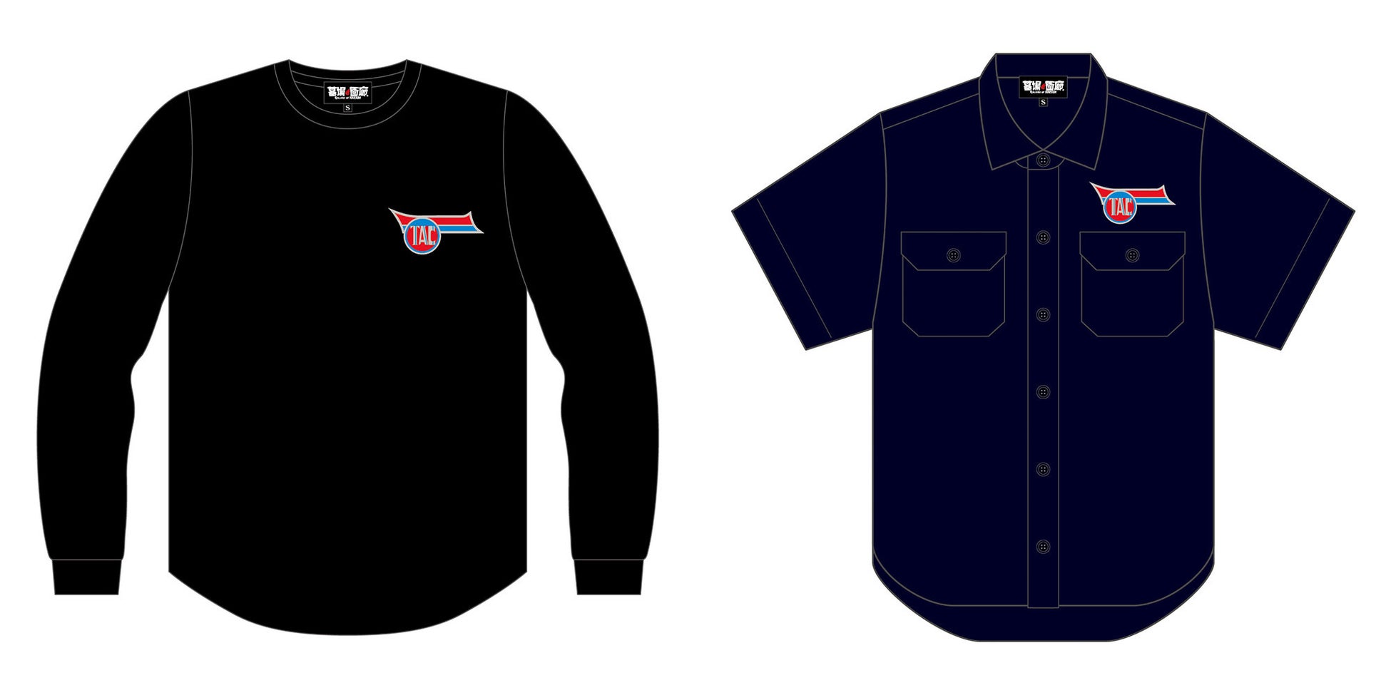 TACロゴが胸に刺繍されたロングスリーブシャツ。