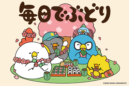 「マルイノアニメPLAYSTORE」第1弾のオリジナルグッズとして、SNSで大人気のキャラクター「毎日でぶどり」の書き下ろしイラストを使用した、オンラインくじとオンラインクレーンゲームを展開いたします。