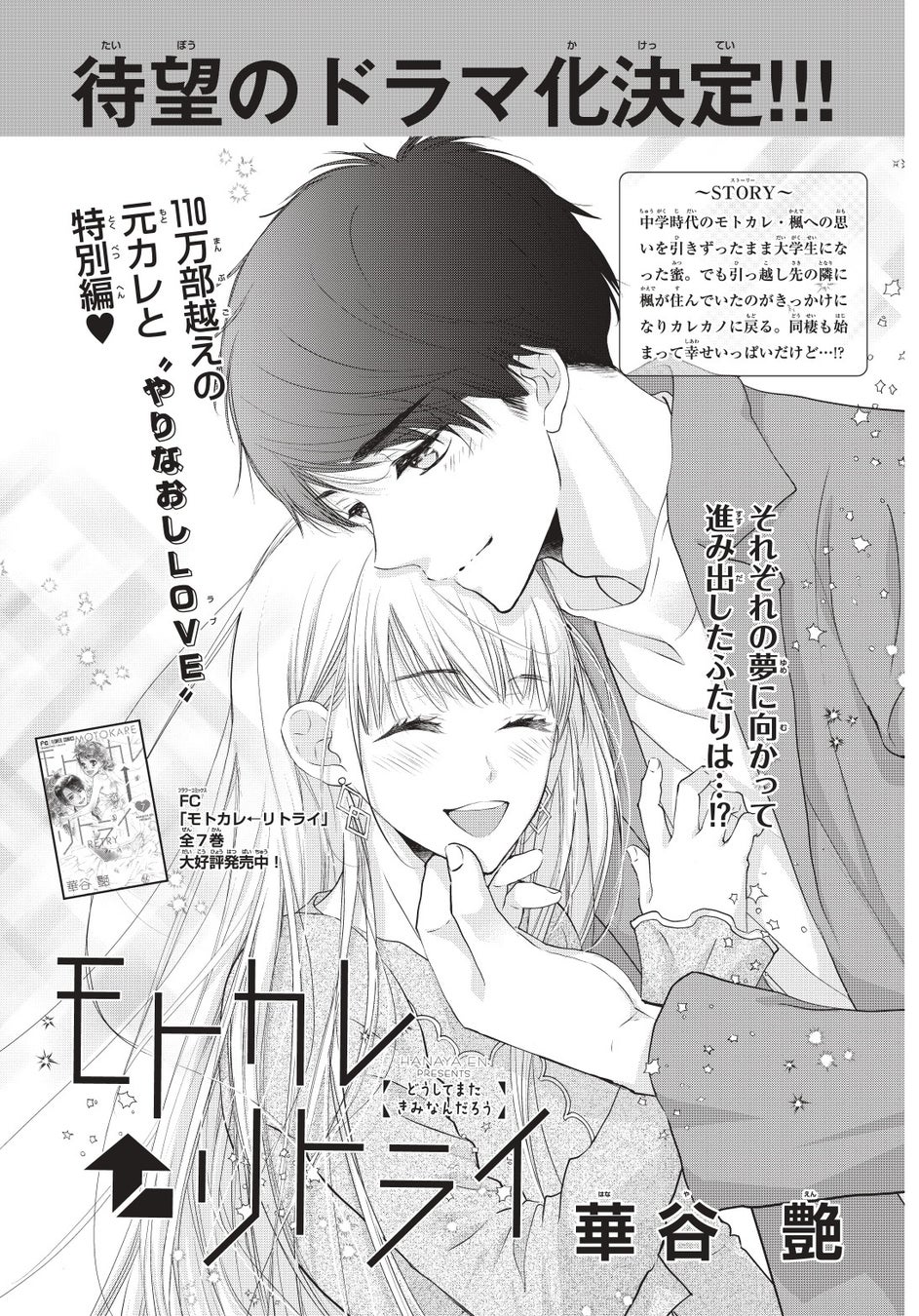 先日TVドラマ化が発表された累計110万部突破の人気コミック『モトカレ←リトライ』(華谷艶/小学館)。女子大生・蜜(みつ)が、進学をきっかけに元カレ・楓(かえで)とまさかの再会をし、もう一度恋をする“やりなおしラブ”を描いた本作のドラマ放送を記念し、この度、著者・華谷 艶(はなや えん)氏が特別に番外編を執筆。大学4年生になった蜜と楓の様子を描いたストーリーを描きました。本編完結より後の、少し大人になった二人の甘い日々が明らかになります。