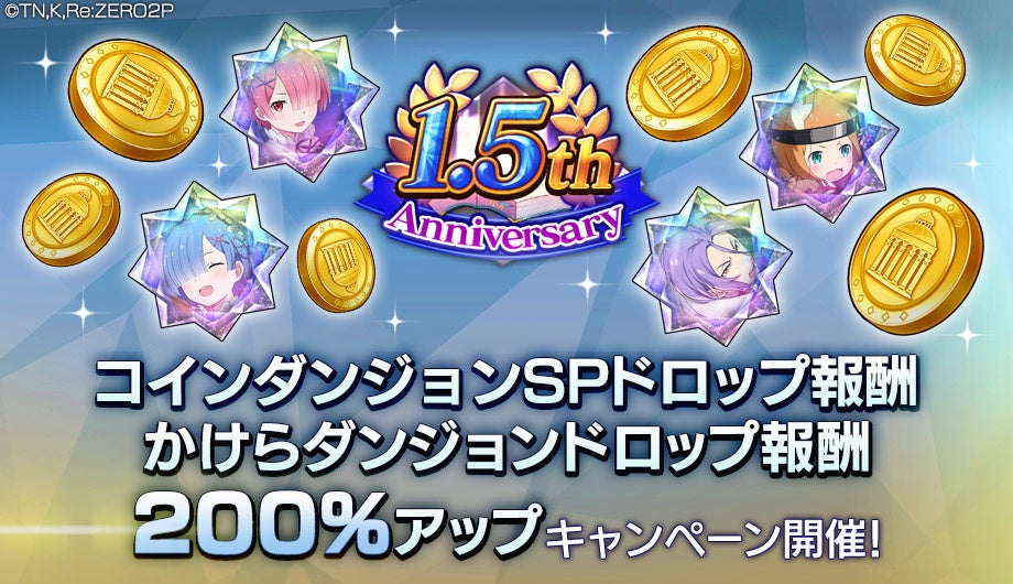 ■1.5周年記念「コインダンジョンSPドロップ報酬200%アップ」「かけらダンジョンドロップ報酬200%アップ」キャンペーン開催