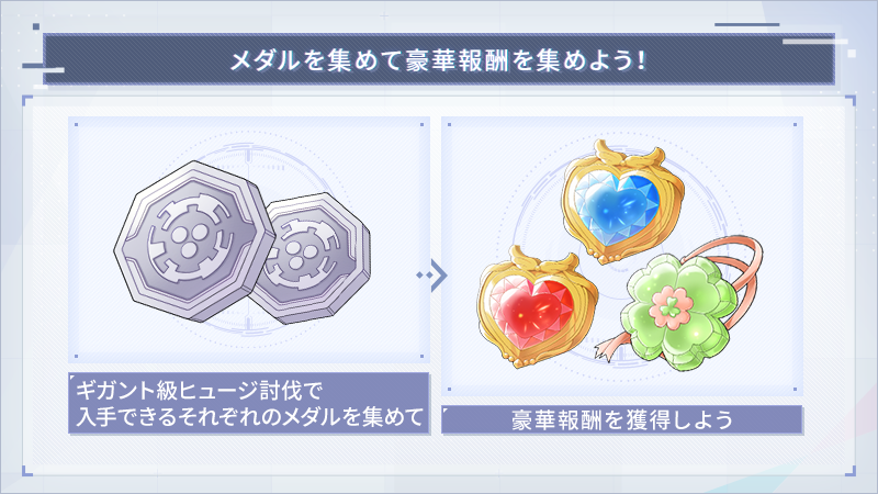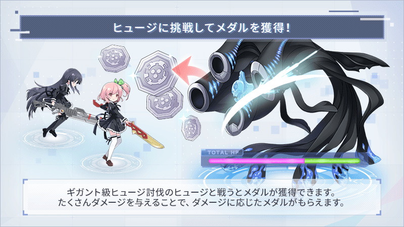 ギガント級ヒュージ討伐は、桁外れのHPをもつヒュージへ与えたダメージに応じて、豪華報酬を獲得できるバトルコンテンツです。