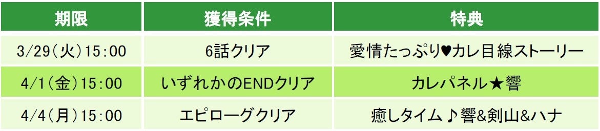 - 響・続編カレ目線ストーリー配信記念 早期クリアキャンペーン