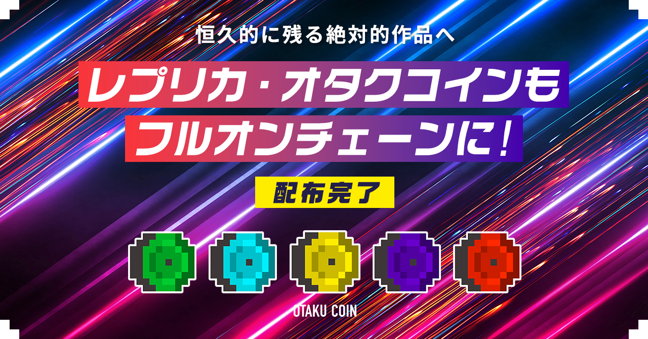 本日、一般社団法人オタクコイン協会・CryptoGames株式会社は、2022年3月10日0:00(JST)時点の1万種限定NFT『レプリカ・オタクコイン』所有者へPolygon上でフルオンチェーン化した『レプリカ・オタクコイン』の追加配布が完了したことを発表しました。『レプリカ・オタクコイン』は公式ショップで定期的にオークション販売されており、毎回延長戦での争いになる注目のNFTコレクションです。