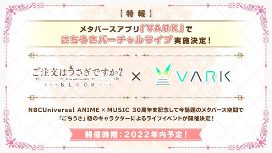 ●メタバースアプリ「VARK(バーク)」で ごちうさバーチャルライブが実施決定!
