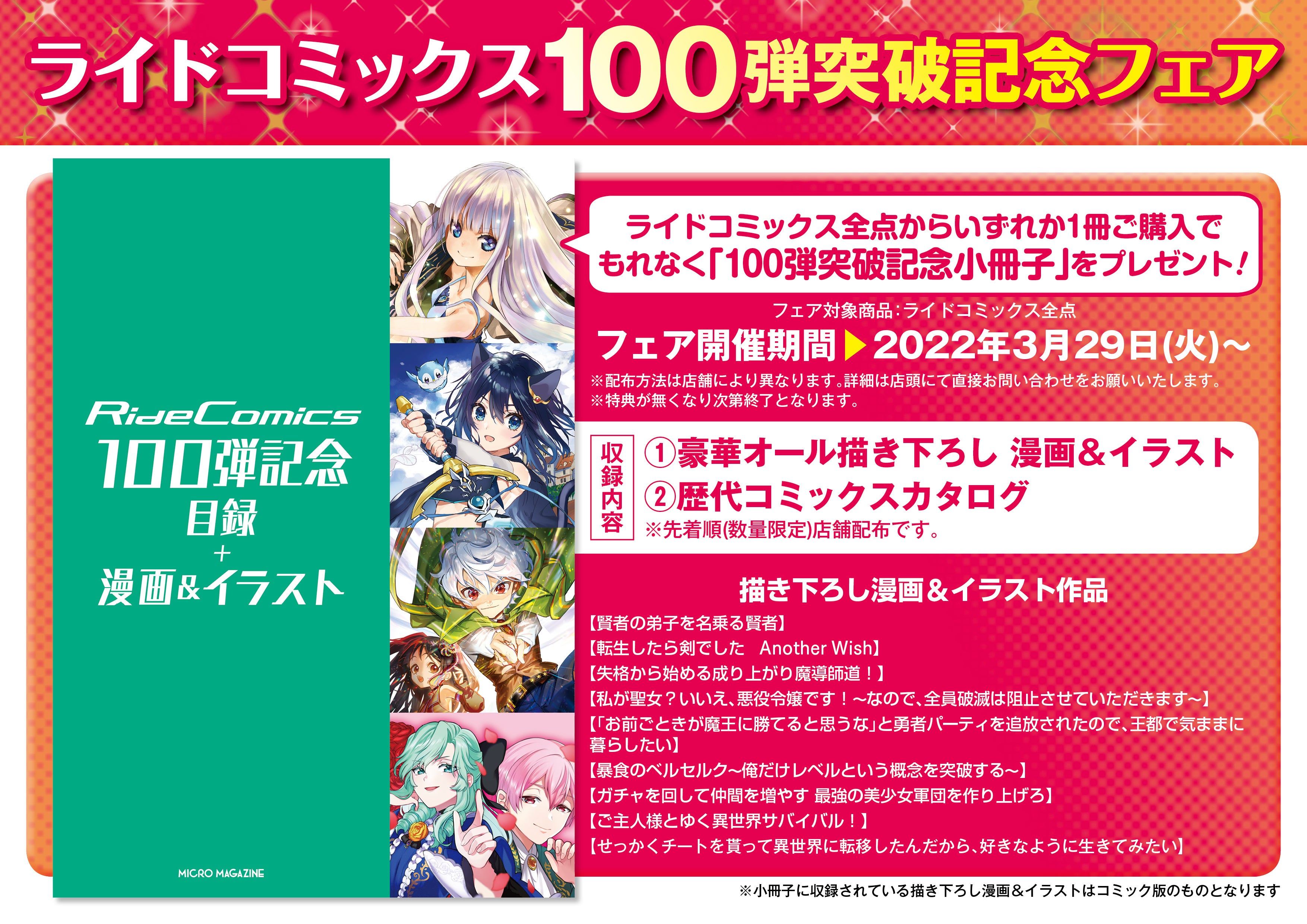 ライドコミックス全点からいずれか1冊ご購入で、もれなく「100弾突破記念小冊子」をプレゼント!