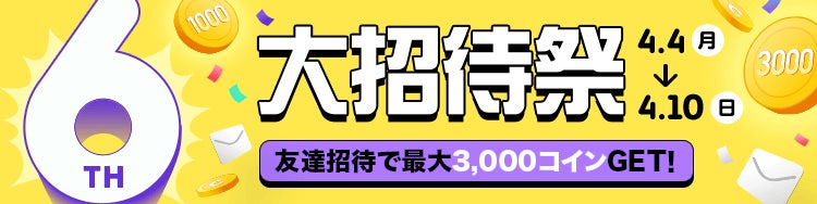 友達を招待して最大3,000コインゲット!4/4~4/10「大招待祭」