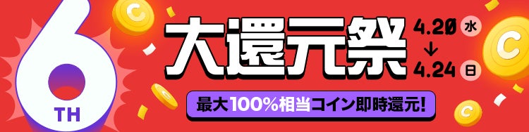 作品購入ごとに最大100%相当コイン還元! 4/20~4/24「大還元祭」