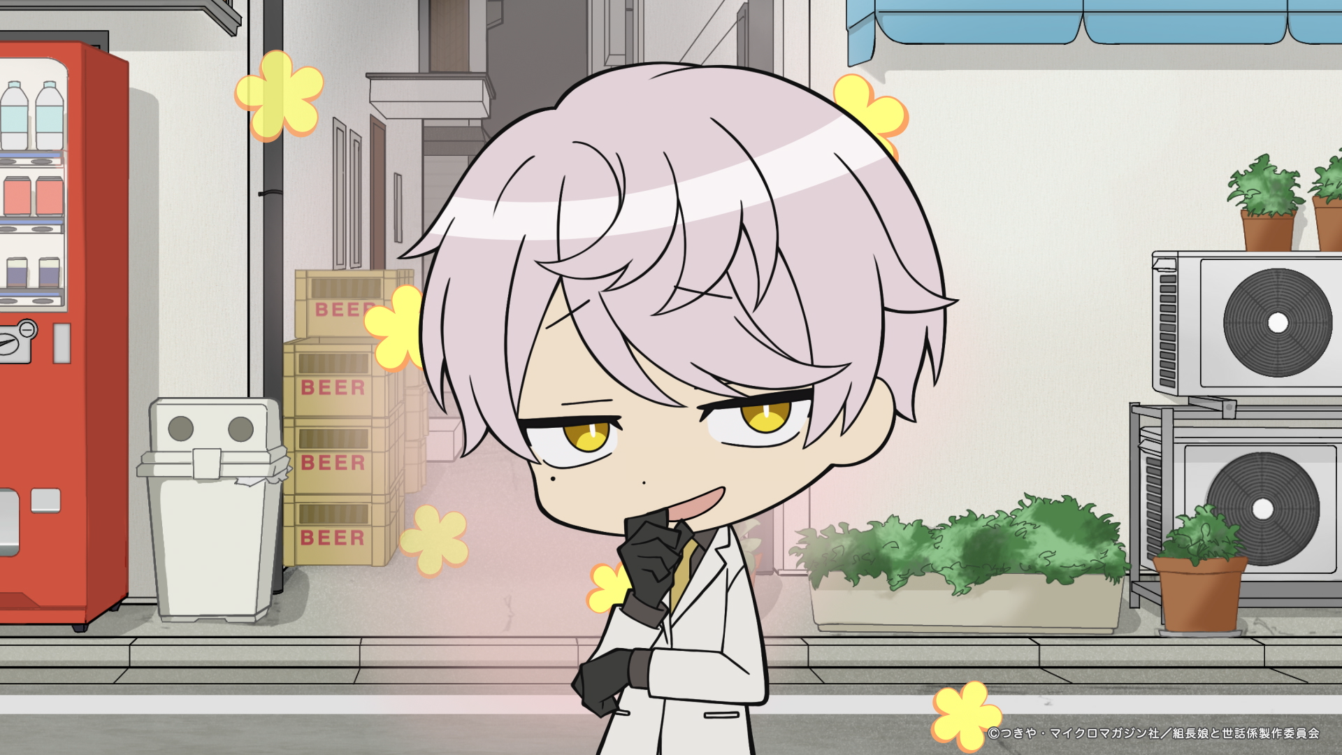 本作品は、TVアニメ本編の公開に先駆け、アニメ本編とは異なるコミカルなトーンで、組長娘と世話係の世界観をお楽しみいただくミニアニメ形式の作品になります。
