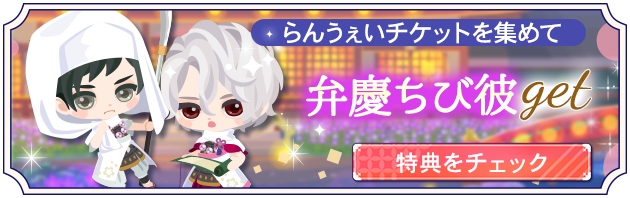 イベント期間内にらんうぇい用の衣装を仕立てたり、「らんうぇいチケット」を集めたりすると、限定衣装を身に着けたちび彼アバターや、彼とのお揃いコーデ、お部屋を一新できる背景やお着物が手に入ります。
