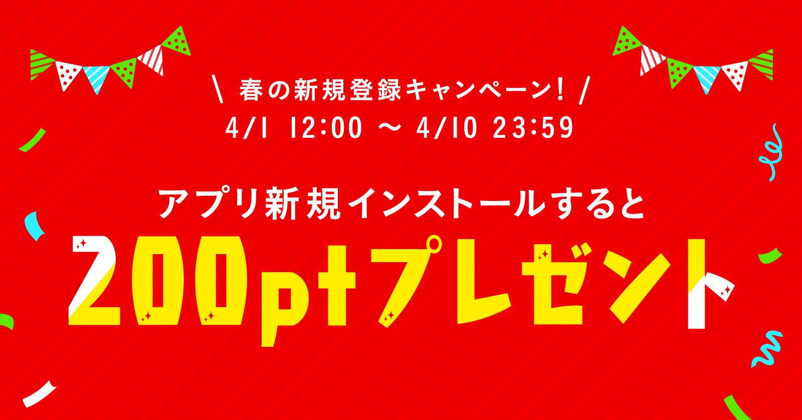 ただいま新規インストールと会員登録で200ポイントプレゼント!