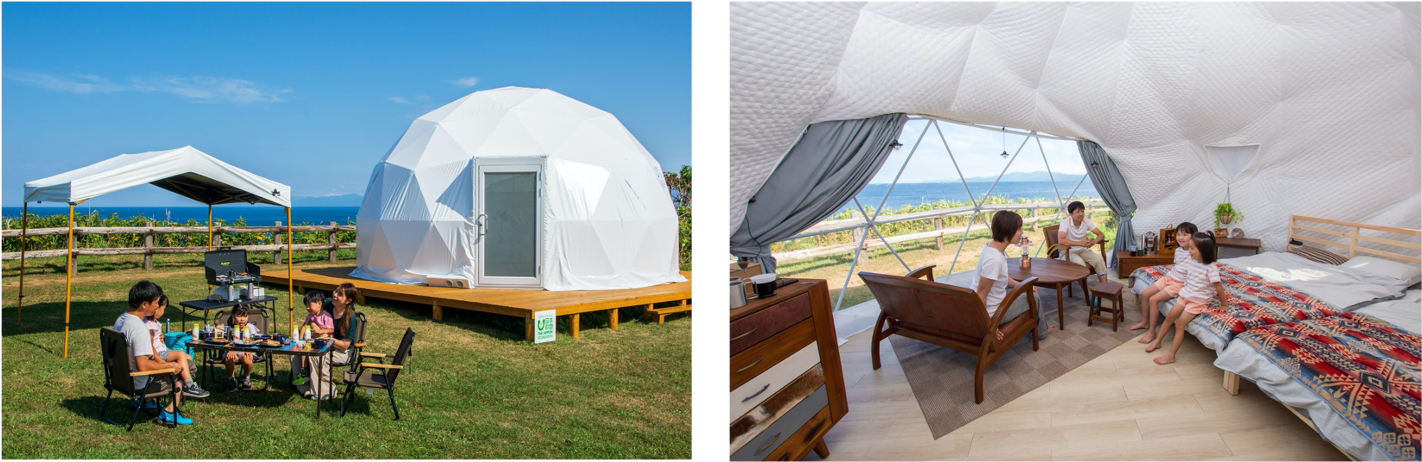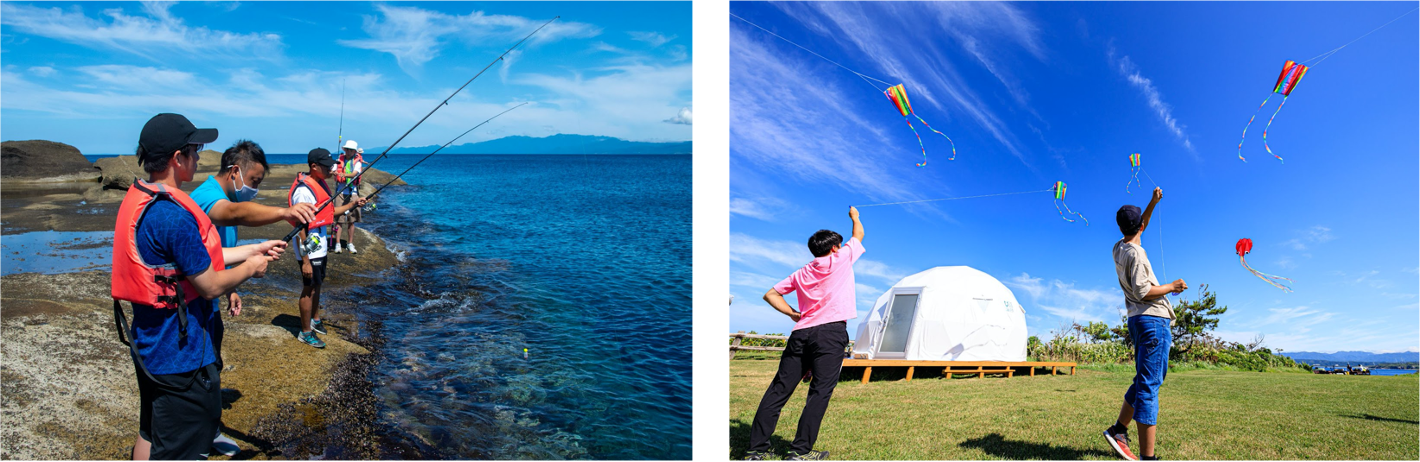 「日本の夕陽百選」に選ばれた絶景や歴史、文化など魅力に満ちたこの島を舞台に、春から夏の間、グランピングテントやキャンプでの宿泊と、食事、海洋体験が楽しめるイベントです。2021年が初回開催で、2022年は2年目の開催となります。