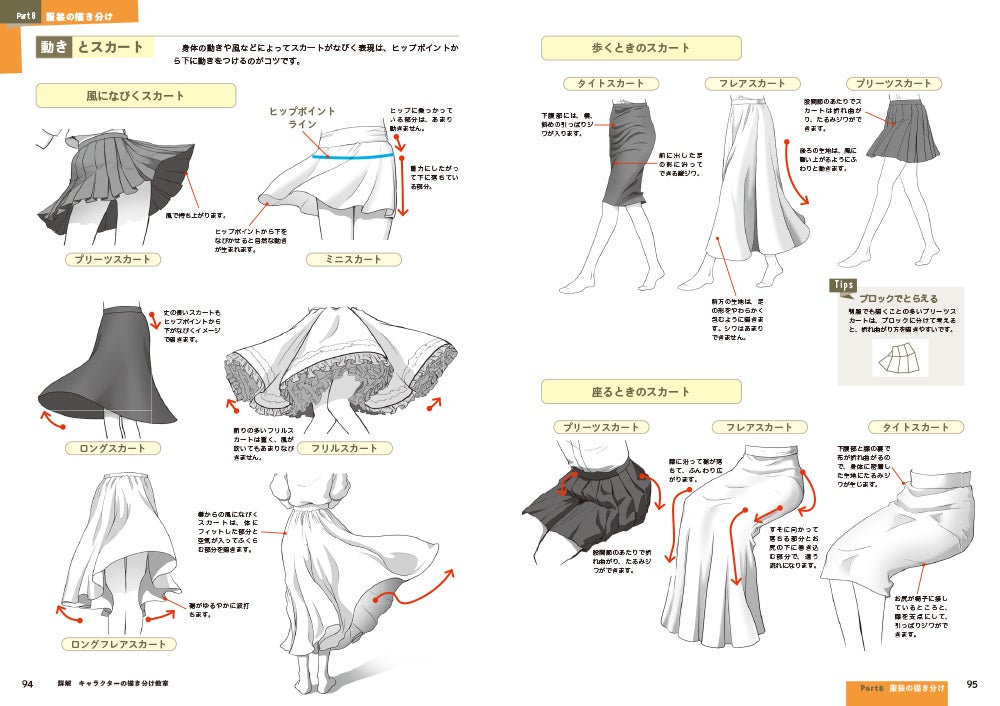 服のシワの描き分け/動きとスカート/生地の描き分け ほか