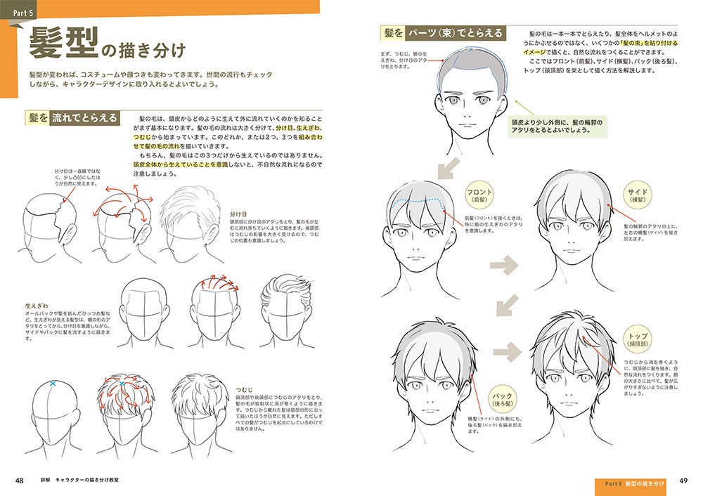 髪を流れでとらえる/髪をパーツ(束)でとらえる/アクションラインのとらえ方 ほか