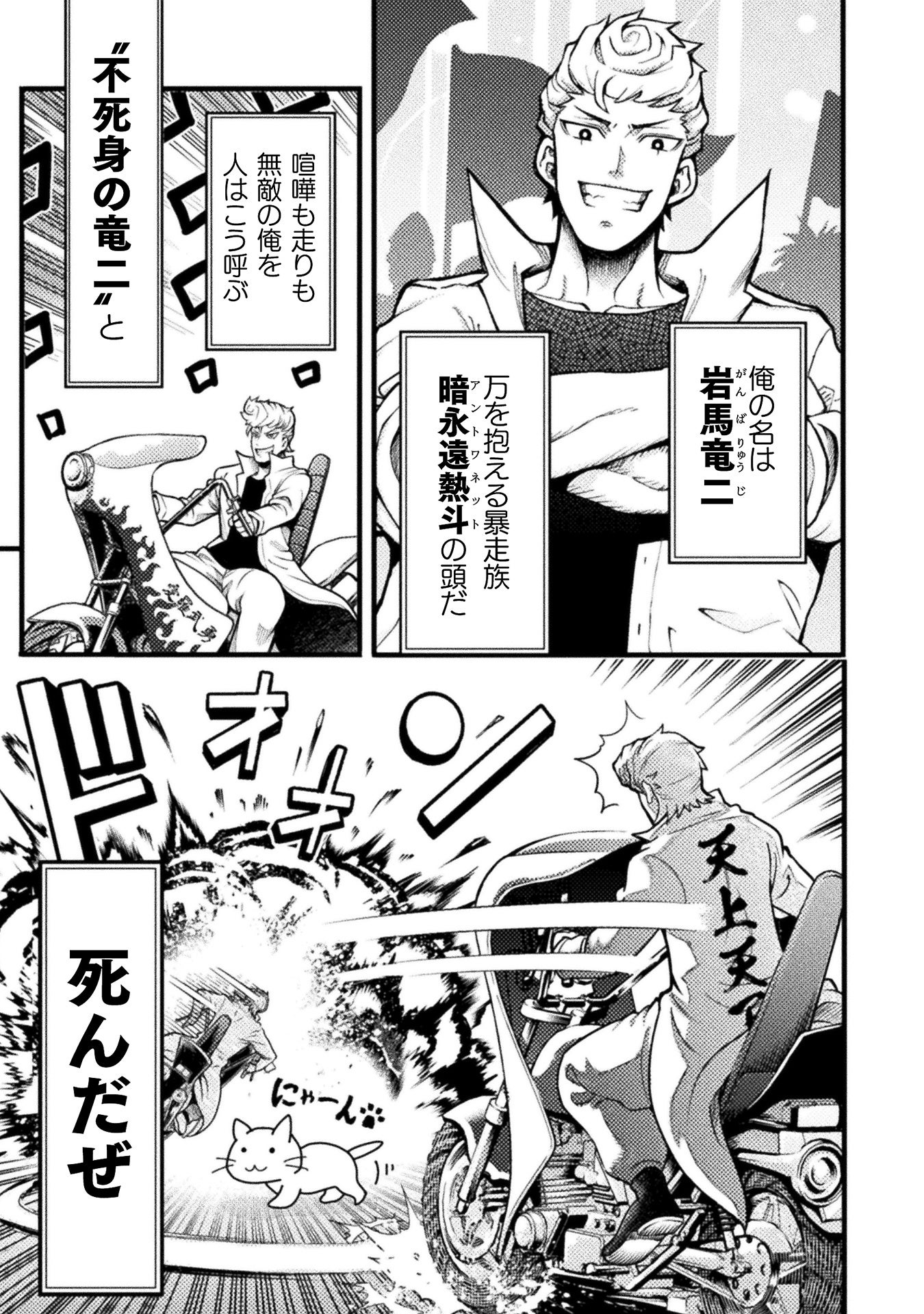 伝説の暴走族「暗永遠熱斗(アントワネット)」の頭・竜二はバイク事故に遭い異世界に転生してしまうことに。