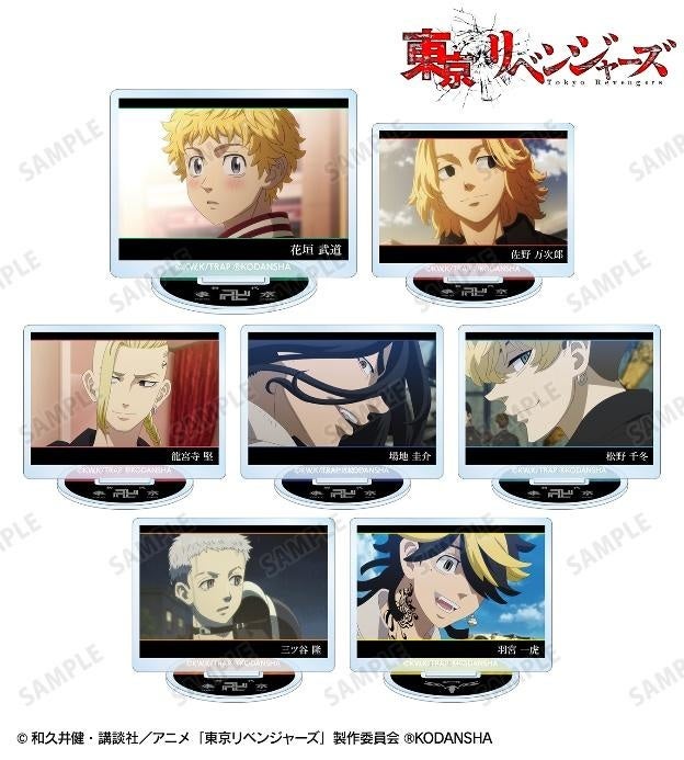花垣 武道、佐野 万次郎、龍宮寺 堅、場地 圭介、松野 千冬、三ツ谷 隆、羽宮 一虎の場面写を名前と合わせてデザインしました。