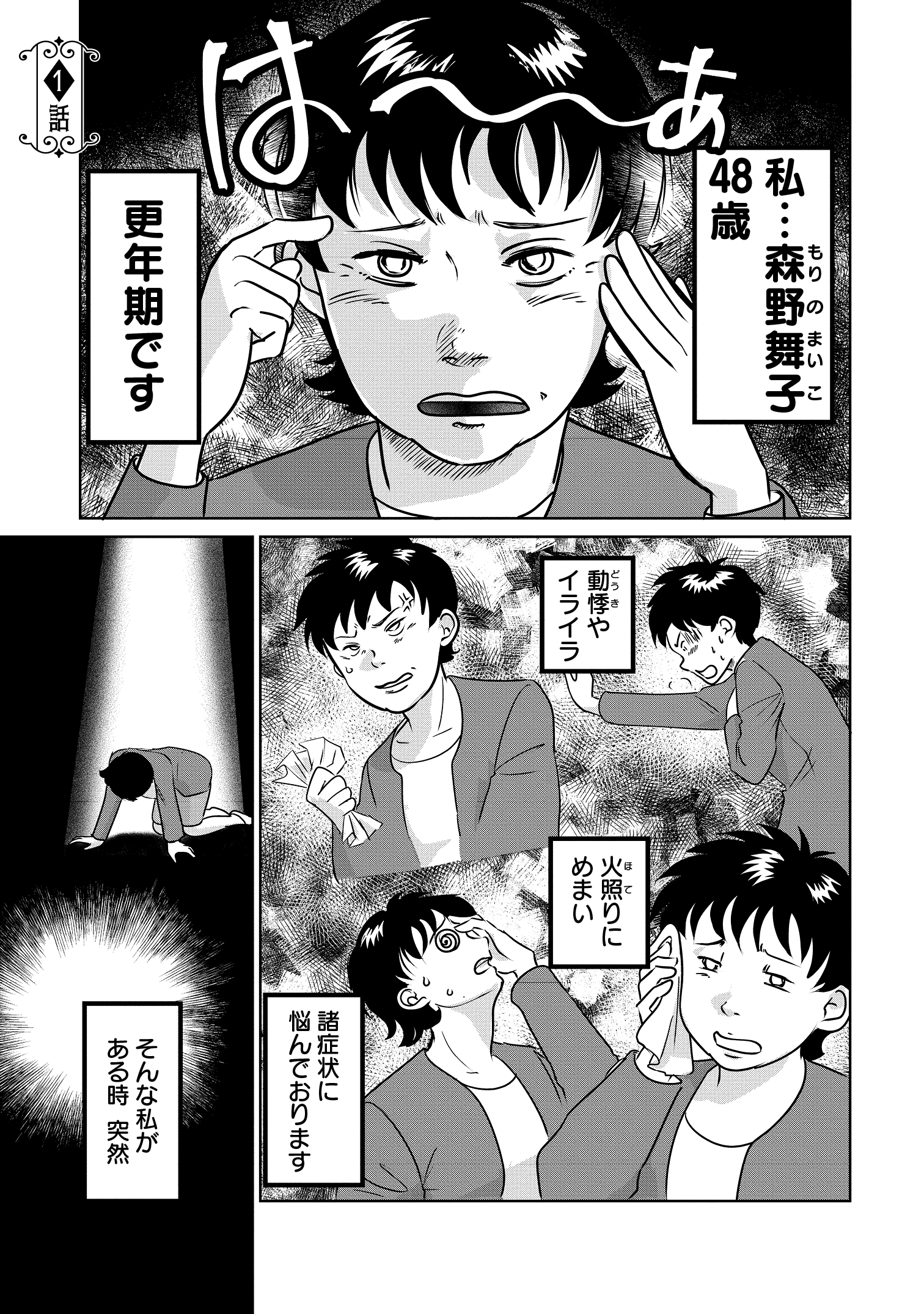 更年期に悩まされるアラフィフ兼業主婦・森野舞子(48)。倦怠期の夫と反抗期の娘と暮らす、普通の母親として生きていたけど……。ある日、街角で何かとぶつかり、目が覚めると、少女漫画『マイコと宮廷学園』のヒロインの姿になっていた!! わけもわからず、パニックになる舞子。そこに、手を差し伸べたのはなんと宮廷学園人気NO.1のあのイケメン王子だった。「この胸の高鳴りは更年期?それともト・キ・メ・キ――!?」 新感覚異世界ラブコメ開幕!!