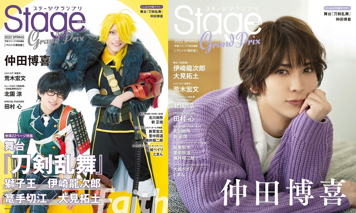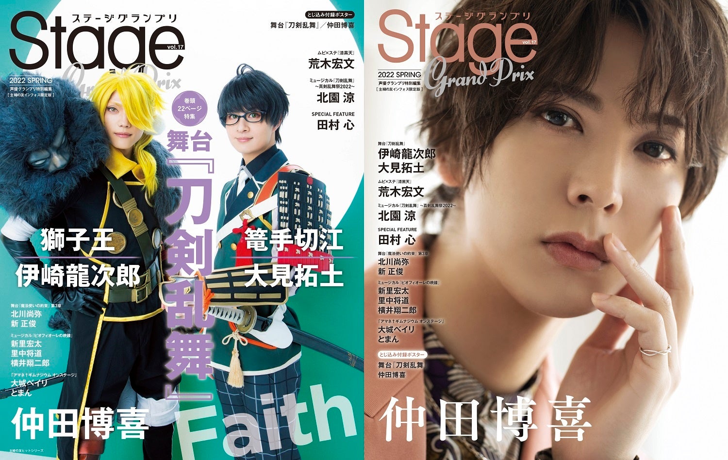 舞台を中心に様々なステージで活躍する俳優をピックアップしたグラビアマガジン『ステージグランプリ』第17弾となる『ステージグランプリvol.17 2022 SPRING』が4月8日に発売された。表紙には舞台『刀剣乱舞』獅子王役の伊崎龍次郎さん&篭手切江役の大見拓土さんがキャラクタービジュアルで登場。裏表紙には仲田博喜さんが約2年4カ月ぶりに登場する。このたび特集誌面の一部が公開された。