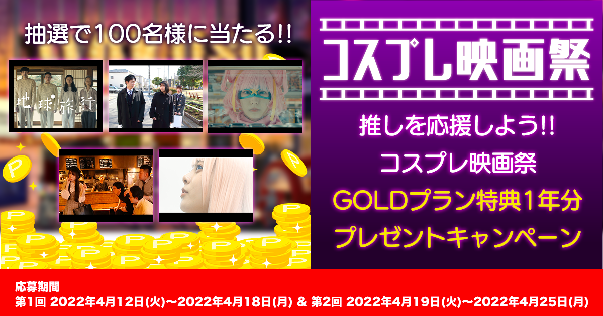 【推しを応援しよう!!コスプレ映画祭GOLDプラン特典1年分プレゼントキャンペーン】