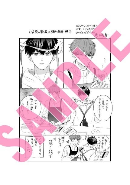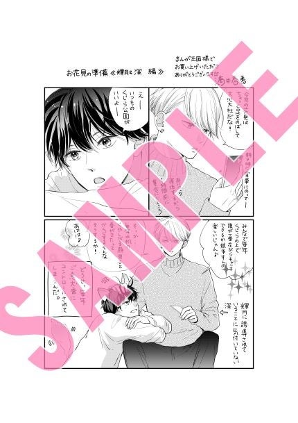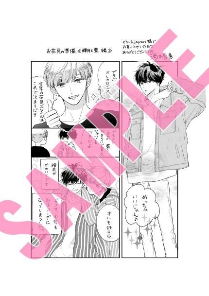 今回の描きおろしペーパーは書店ごとに異なっており、ebookjapanでは「輝月&藍(あいる)コラボ」、コミックシーモアでは「輝月&周吾コラボ」、まんが王国では「輝月&深コラボ」、LINEマンガでは「輝月&水帆コラボ」とお花見の準備をする5人の様子が描かれている特別版です!