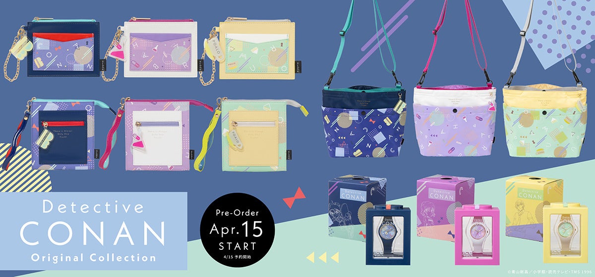 江戸川コナン、灰原哀、安室透の3キャラクターをイメージした POPなメンフィス柄のシリーズを展開します。