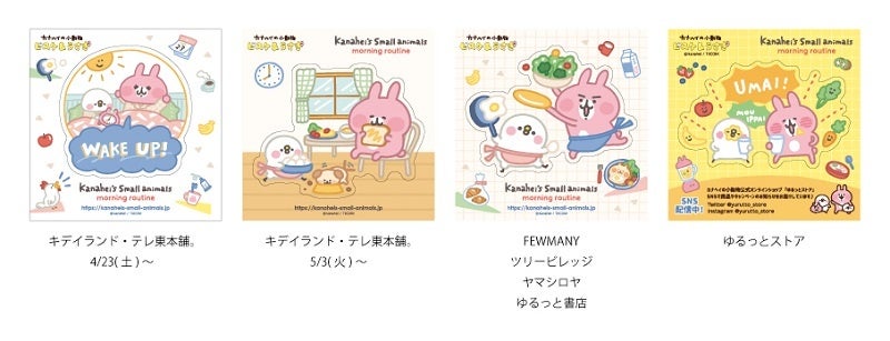 株式会社テレビ東京コミュニケーションズ(本社:東京都港区、代表取締役社長:佐々木宣幸)は、4月23日(土)~5月22日(日)までキデイランド、ロフト、ヴィレッジヴァンガード、テレ東本舗。、FEWMANY、テレビ局公式ショップツリービレッジ、ゆるっと書店、ヤマシロヤ、カナヘイの小動物公式ECサイト「ゆるっとストア」で、カナヘイの小動物『ゆるっとほっこりフェア ~カナヘイの小動物 モーニングルーティン~』を開催致します。