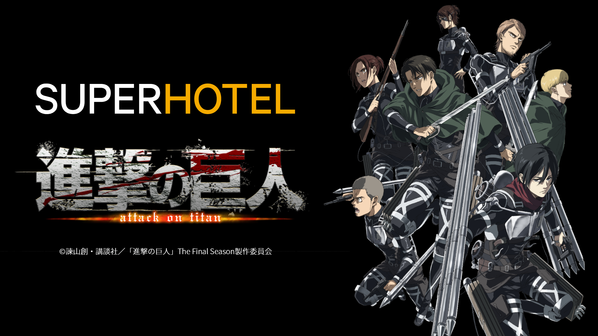 「Natural, Organic, Smart」をコンセプトとし、地球にも人にも優しいホテルを目指す株式会社スーパーホテル(所在地:大阪府大阪市西区西本町1-7-7、代表取締役:山本 健策)は、2022年4月1日より宿泊期間が開始したTVアニメ「進撃の巨人 The Final Season」とのコラボプランを、2022年4月24日宿泊分よりスーパーホテル東京・赤羽駅南口店にて追加で販売開始いたします。