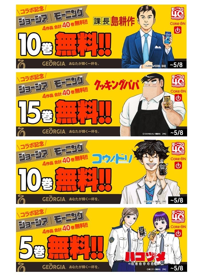 ●「ジョージア」と「モーニング」のスペシャルコラボ!モーニングの人気作品のキャラクターたちが「ジョージア」でひと息!
