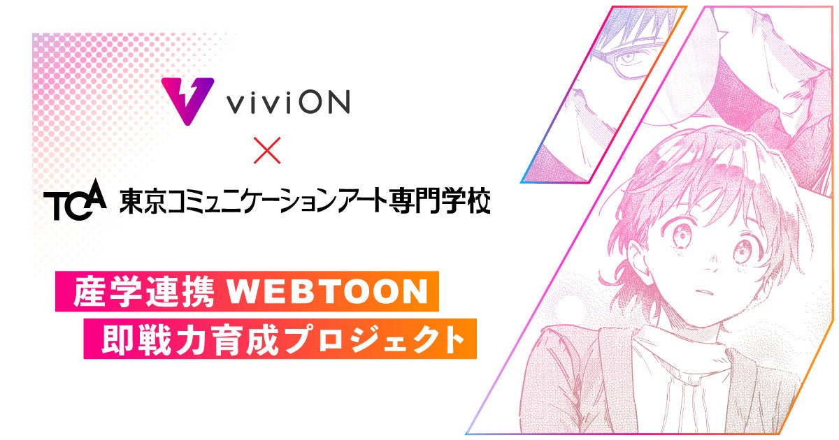 株式会社viviON(以下、viviON、所在地:東京都千代田区、代表取締役:明石耕作)は東京コミュニケーションアート専門学校(以下TCA、所在地:東京都江戸川区、運営:学校法人滋慶学園)と共同で、在校生がWEBTOONの制作過程を1から学べ、さらに最短半年でデビューが可能な一気通貫の産学連携プロジェクトを発足しました。