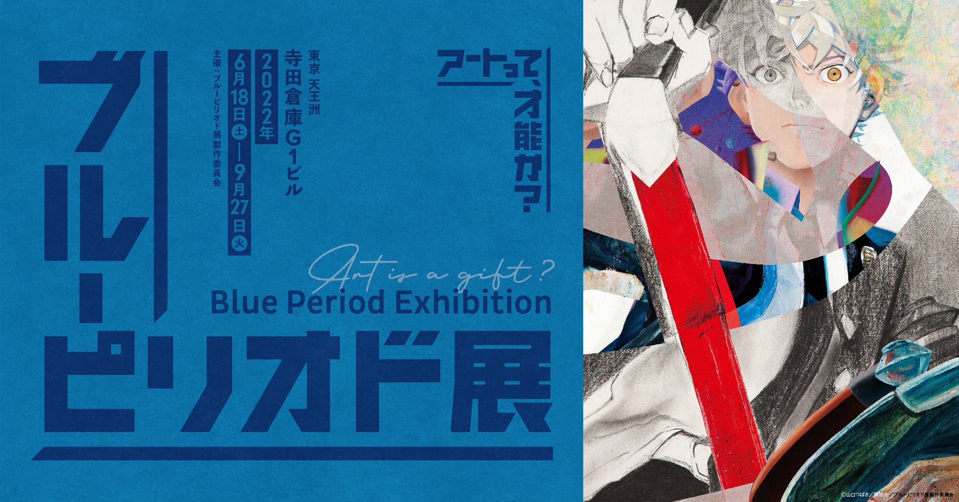 ブルーピリオド展製作委員会は、2022年6月18日(土)~9月27日(火)の間、東京 天王洲 寺田倉庫G1ビルにて講談社「月刊アフタヌーン」にて大好評連載中『ブルーピリオド』初の展覧会「ブルーピリオド展~アートって、才能か?~」(以下ブルーピリオド展)を開催します。また、開催に伴い、全国の美大受験予備校生と共創した展覧会キービジュアル・一部展示内容・チケットの販売形態を公開します。