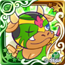 効果:緑属性カードとこうげきタイプの攻撃力を3.5 倍、体力を3.2倍にし、体力が0 になっても1 回のみ「体力1」で踏みとどまる