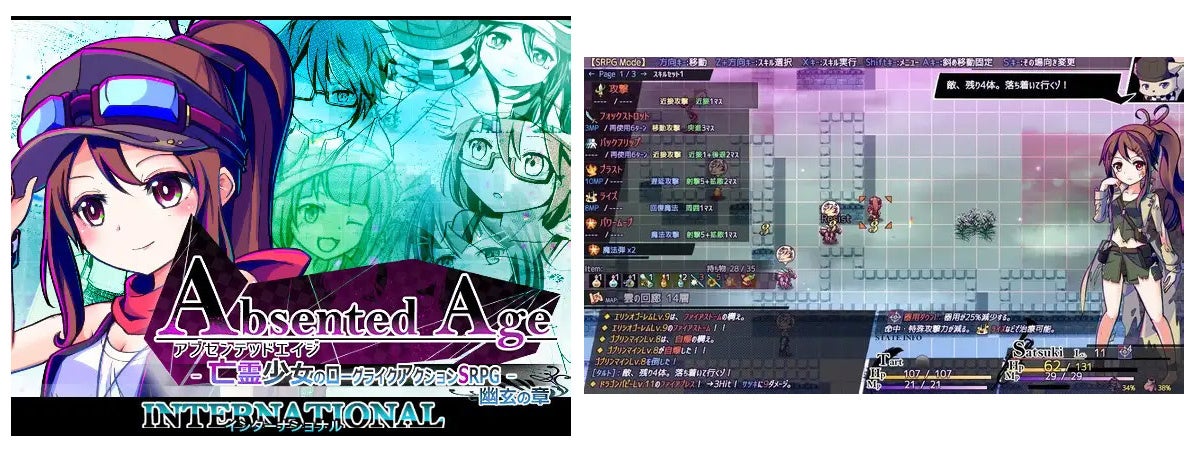 アブセンテッドエイジは非戦闘時はARPG、戦闘中はSRPG(ローグライク戦闘)で展開される新感覚のミックスジャンルゲームです。